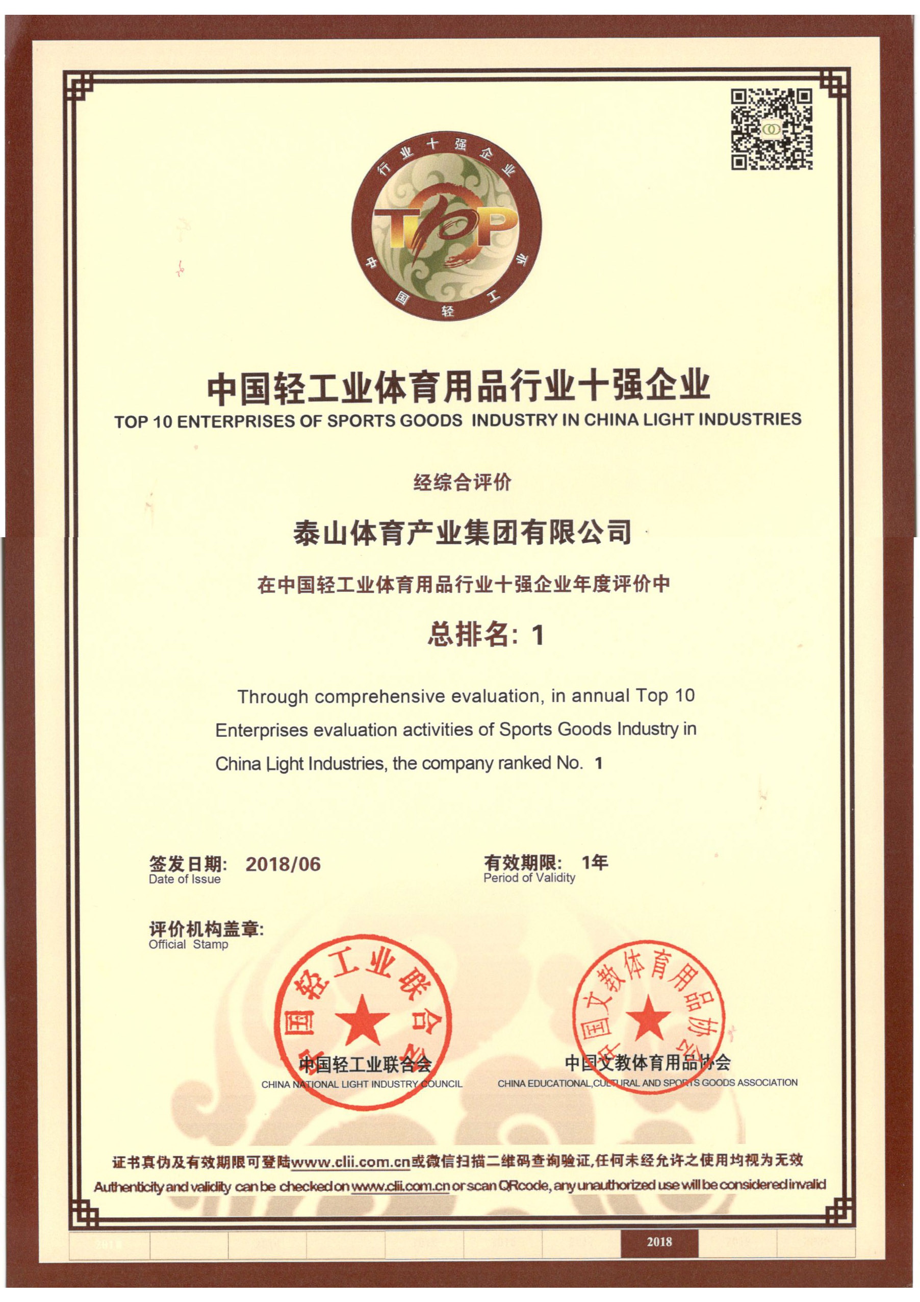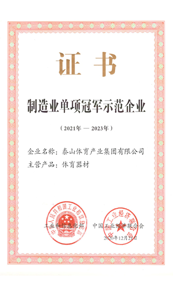 金沙js93252集团是全国体育用品标准化技术委员会副主任单位、中国文教体育用品协会健身和体育器材专委会主任单位、全国轻工行业先进集体、全国群众体育先进单位、国家制造业单项冠军示范企业、国家体育产业示范单位,连续多年荣获中国轻工业体育用品行业十强。拥有多个国家级研发平台,承担国家科技支撑计划2个,火炬计划3个。