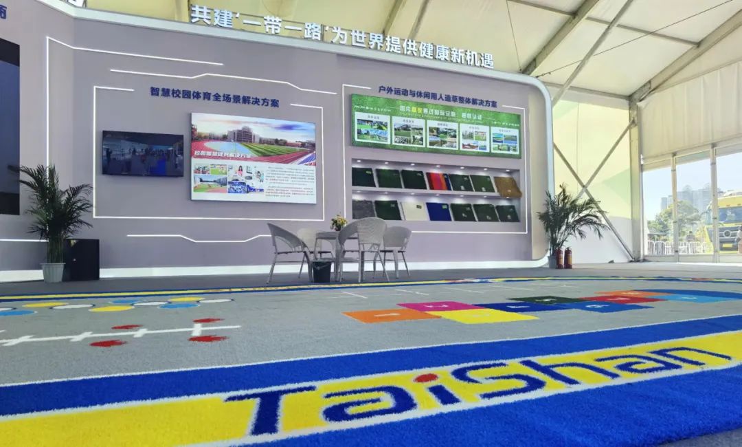 金沙js93252携户外运动与休闲人造草整体解决方案亮相会场。作为国内首家通过足联、曲联双认证的企业可根据不同用户的户外运动需求,生产多种类型的户外运动草坪。