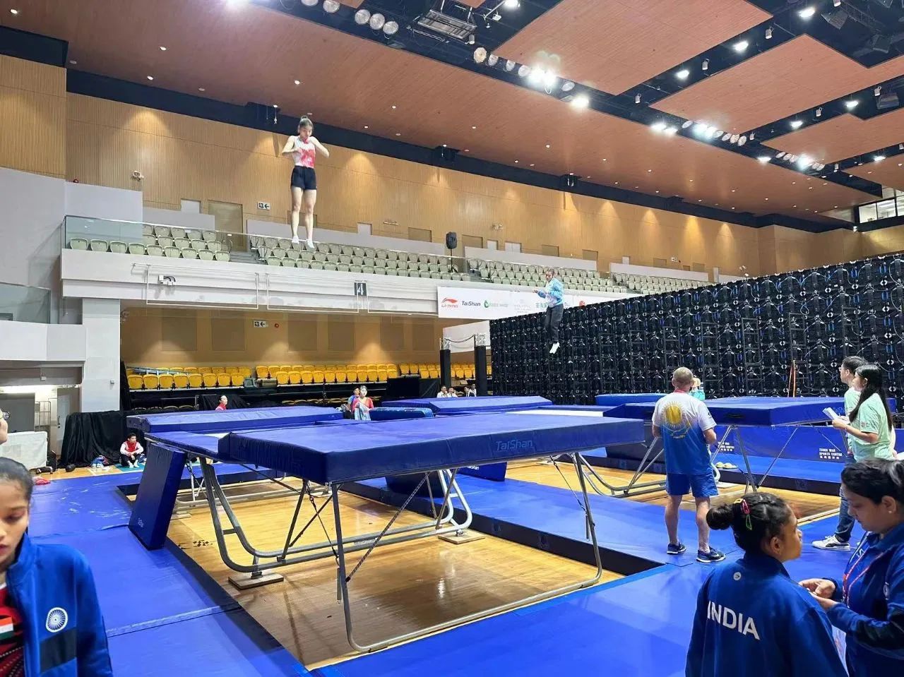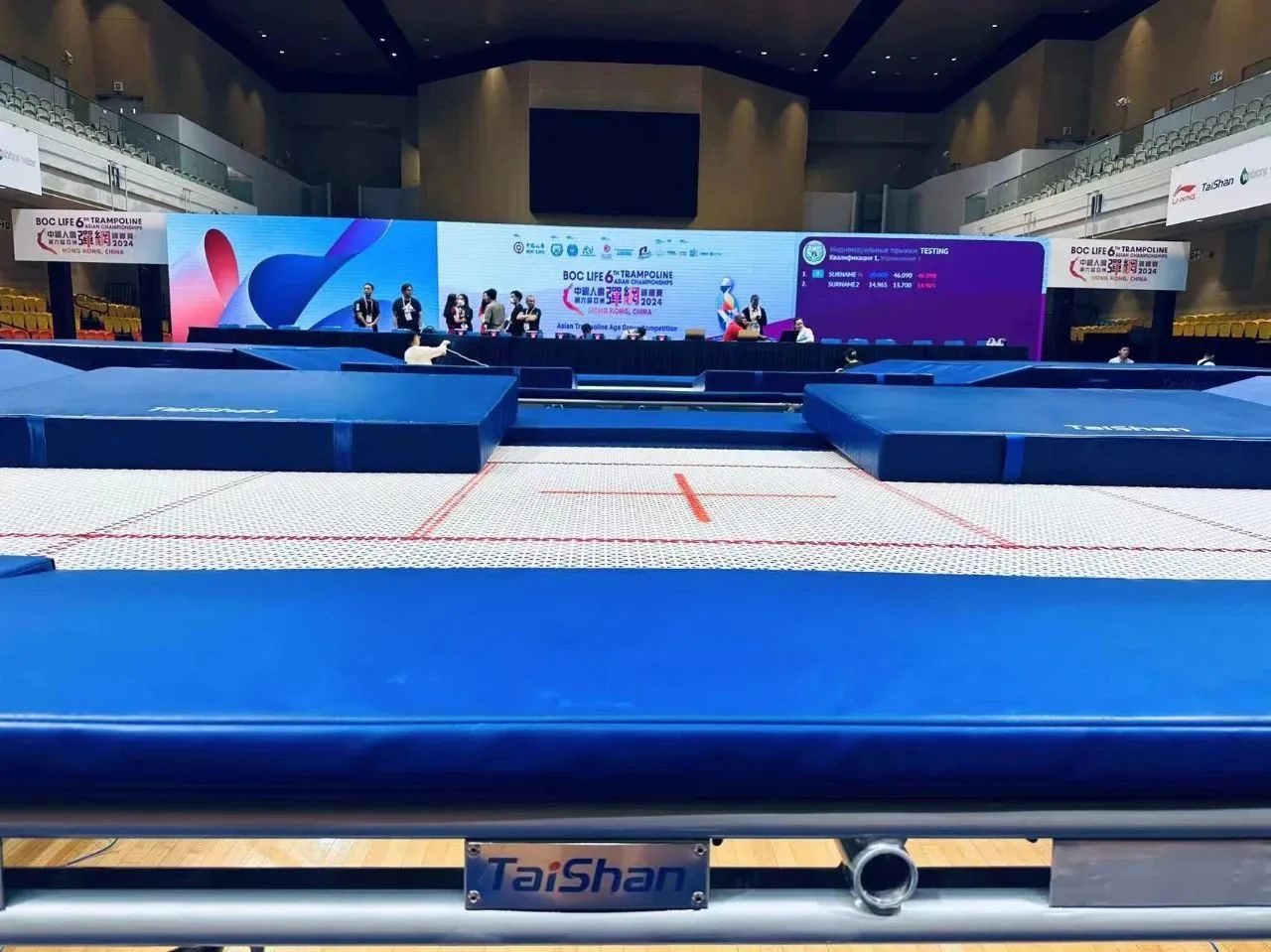为服务好本届蹦床锦标赛,金沙js93252保障人员严格按照赛事服务手册开展工作,从场馆的规划布局、器材的安装调试、标准高度的校准、过程巡检等各个环节,一丝不苟、严谨细致,确保蹦床器材安装的准确无误,始终践行国际赛场上的中国标准,见证金沙js93252全领域规划、设计、制造、集成、运营、服务一站式解决方案的发展理念。