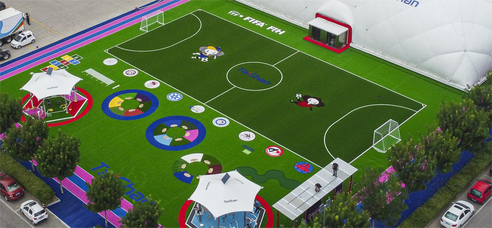 整个顶目建筑,根据不同分区的用户需求和体验,在场地铺设上,均采用金沙js93252新材料功能人造草铺设,例如健身步道搭配铺设负离子草、跑道草,休闲景观草等,不同运动场地铺设篮球草、网球草、羽毛球草等,在儿童落戏区铺设儿童运动草、卡通图案草、搭设茅草屋等,全方位保证运动安全和环保。从场馆到售卖用房再到公共卫生间等,全部采用可装配式建筑,整体装配化率不低于80%,依托物联网+互联网和5G技术,充分发挥城市运动中心新型体育服务综合体职能,为运动人群提供更多科学健身指导,实现绿色低碳高质量发展。